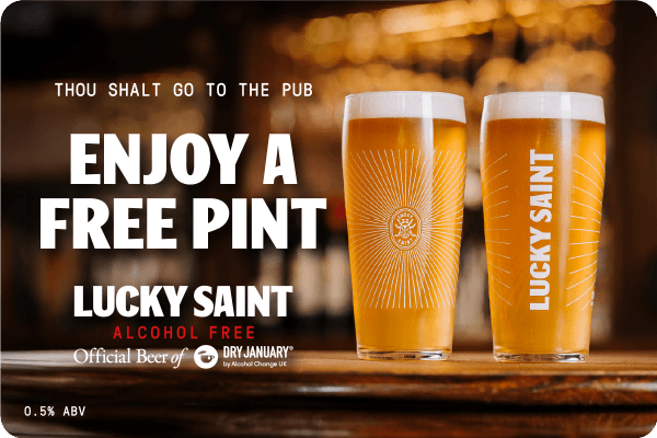Get a free pint of Lucky Saint at The Woodman